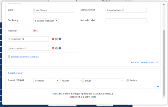 I have the Groups "Freelancer (10)" and "Ausschreiber (11)" and "Test (12)"
